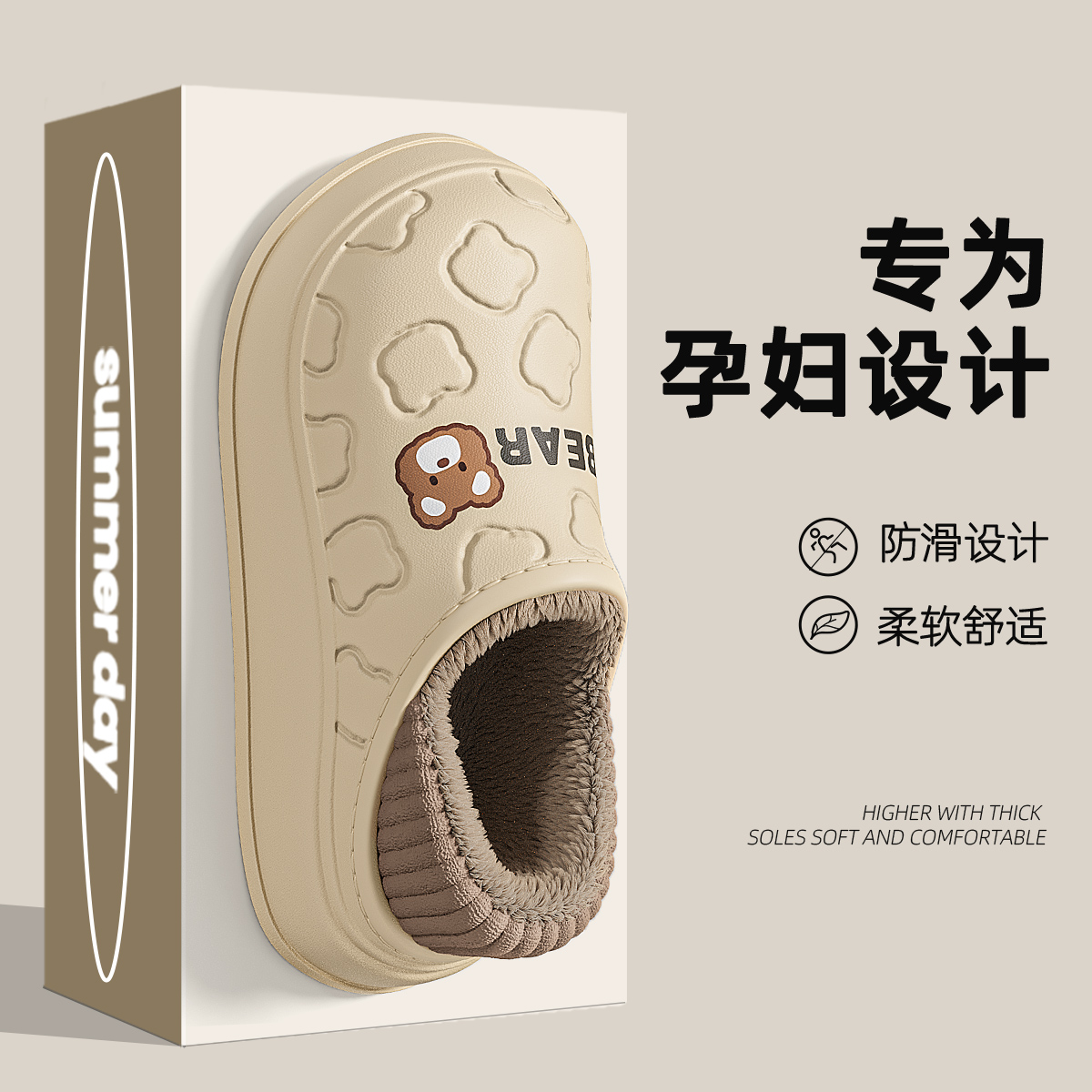 月子鞋包跟女秋冬季2024新款室内家居外穿防滑防水保暖孕妇棉拖鞋