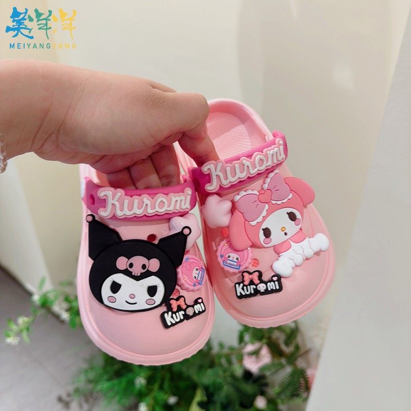女童洞洞鞋2026新款今年流行爆款网红超好看儿童女孩黑色拖鞋外穿