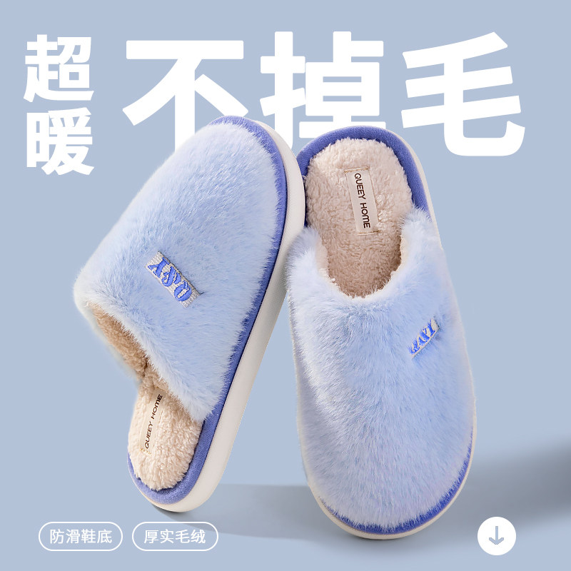 棉拖鞋女士秋冬季家用厚底防滑2025新款毛毛绒室内家居保暖情侣男
