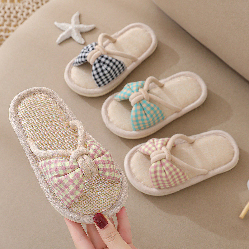 女童亚麻防滑厚底镂空韩版居家四季宝宝地板专用拖鞋