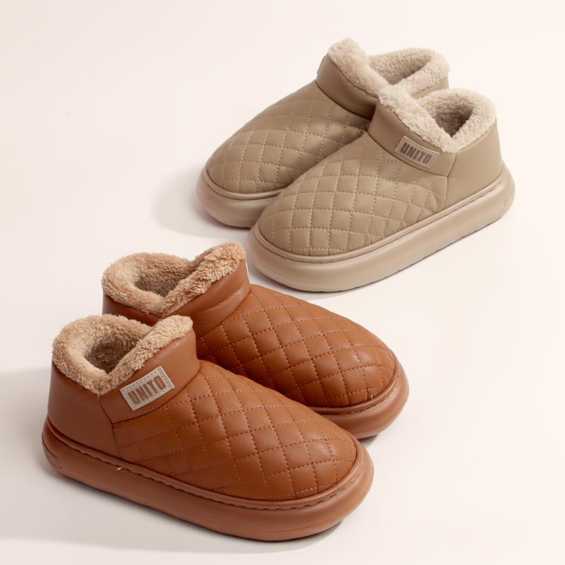 儿童棉拖鞋男童冬季保暖加绒加厚pu皮防水防滑女孩宝宝棉鞋亲子鞋