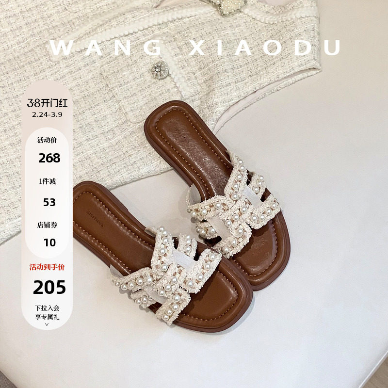 外贸原单女鞋新款时尚百搭日常出行休闲方头纯色平底拖鞋时装凉鞋