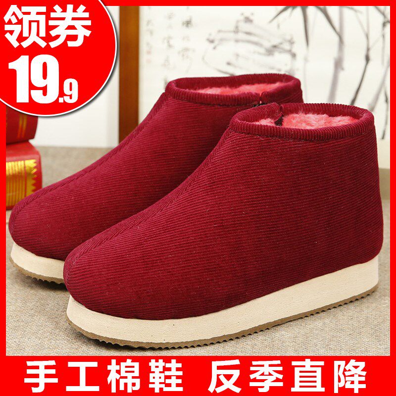 冬季保暖中老年棉鞋老人防滑软底妈妈高帮棉拖鞋女款男士加绒加厚