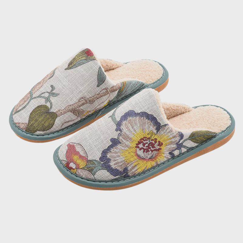 民族风麻棉布拖鞋居家秋冬季男女情侣家用保暖室内带绒棉拖鞋防滑