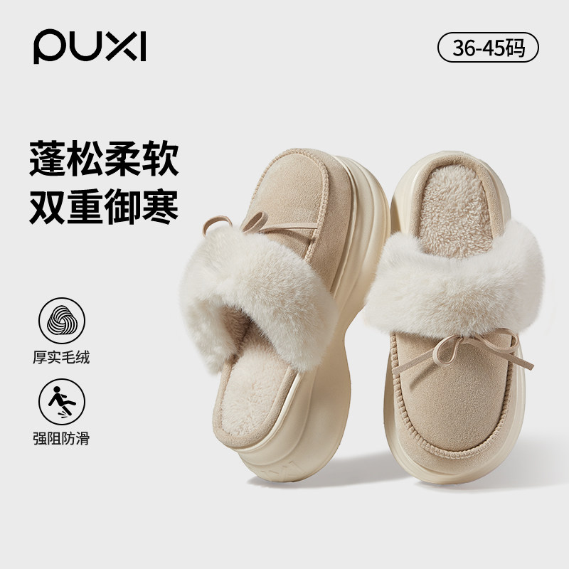 朴西秋冬季保暖棉拖鞋女新款居家防滑室内静音加厚简约情侣棉鞋男