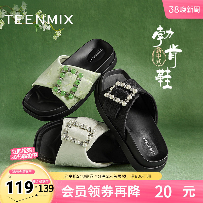 天美意一字拖新中式勃肯鞋厚底拖鞋女外穿休闲凉拖鞋新款