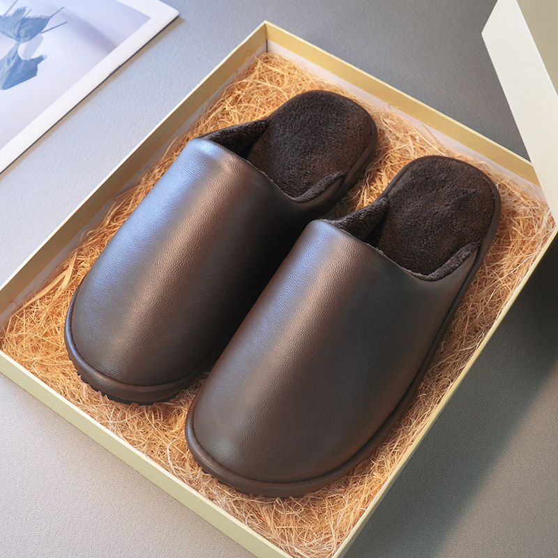 朴西防水羽绒布中包跟棉拖鞋女士秋冬季室内家居厚底可外穿棉拖男