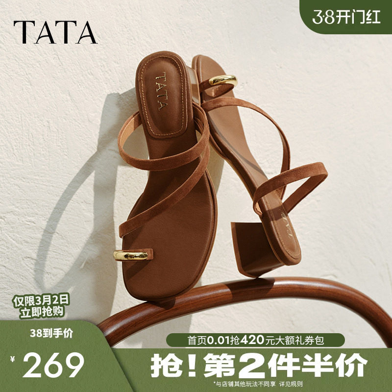 TATA他她高跟一字带凉拖鞋女鞋法式气质凉鞋2025夏季新款XPS01BT5