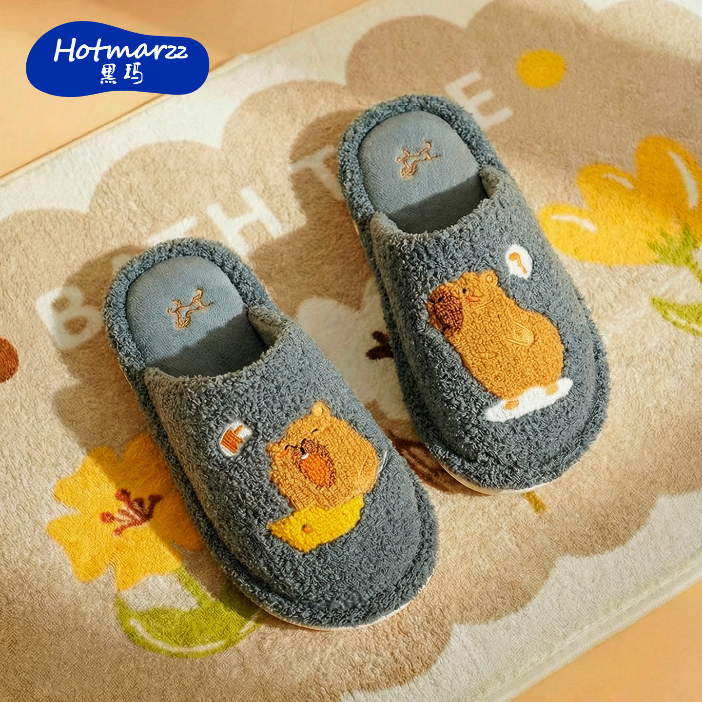 朴西秋冬季新款卡皮巴拉棉拖鞋女居家防滑软底静音简约情侣棉拖男