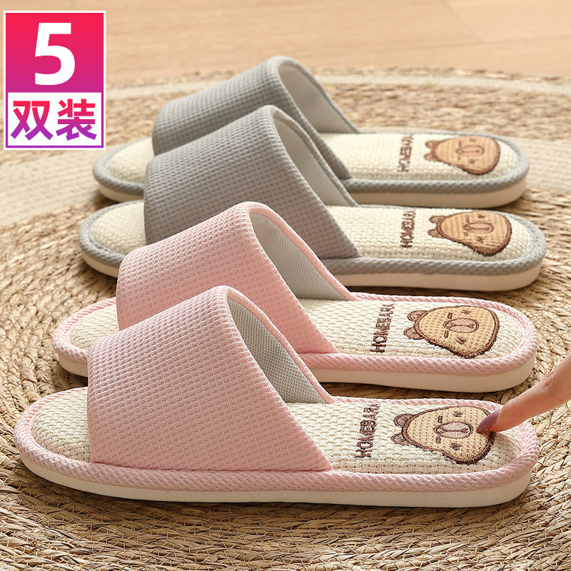 朴西新款静音棉布拖鞋女士四季百搭居家软底防滑吸汗情侣棉布拖男
