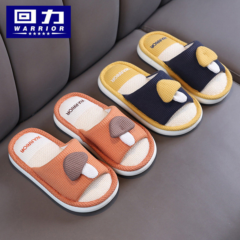 新款居家纯棉布艺儿童卡通恐龙小中大童软牛筋底防滑家居室内拖鞋