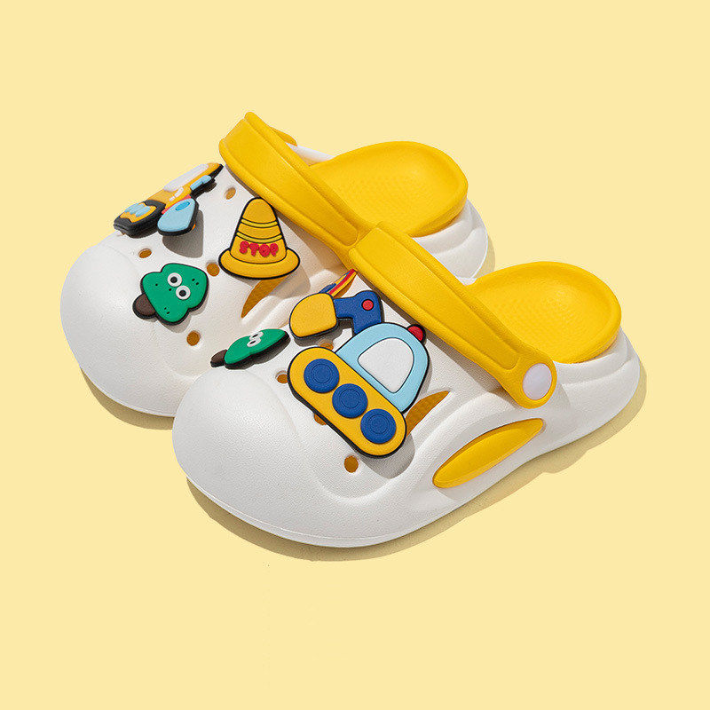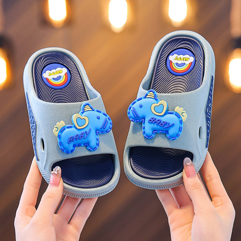 儿童包跟加绒保暖拖鞋冬外穿男孩女童宝宝厚底防滑室内家居PU防水