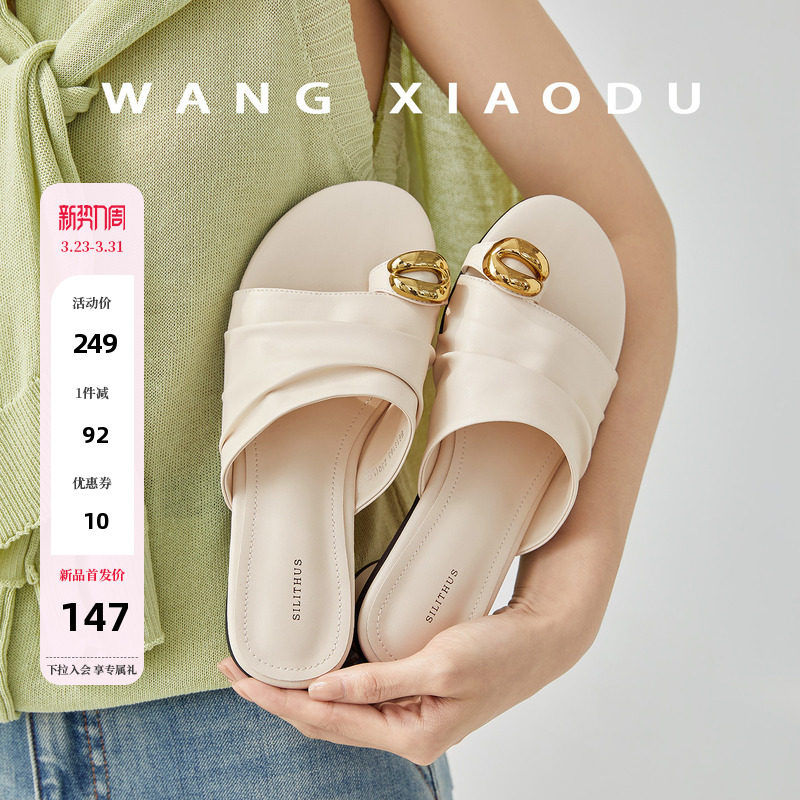 原创【王小毒】夏日海风●3cm粗跟夹趾拖鞋女外穿沙滩金属一字拖