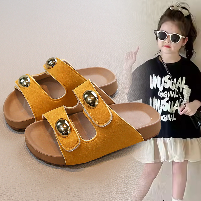 女童2026春夏新款复古软底轻便一字拖女孩小众洋气露趾时尚拖鞋女