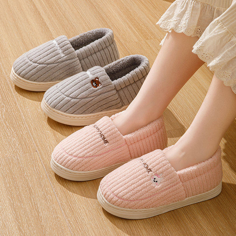 朴西踩屎感保暖棉拖鞋女冬季居家防滑室内静音简约百搭情侣棉拖男