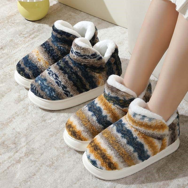 快鹿新款高帮毛绒保暖简约女士包跟棉鞋女式厚底防滑家居棉拖鞋冬
