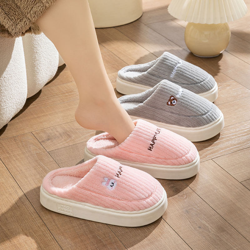 朴西小土豆加绒棉拖鞋女冬居家舒适情侣保暖厚底舒适简约室内棉拖