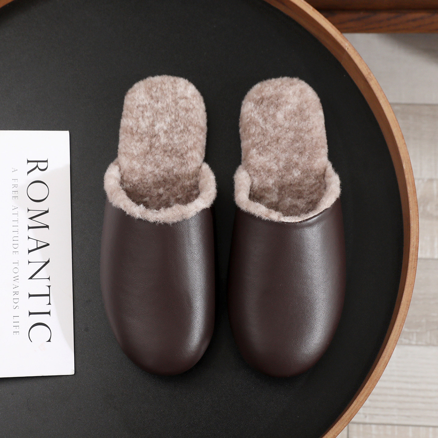 品牌真皮勃肯鞋女2025新款厚底包头半拖鞋外穿加绒保暖毛毛棉拖鞋
