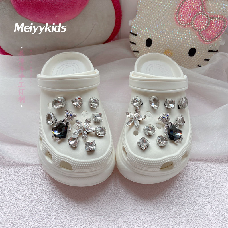 2025年新款网红洞洞鞋配饰高级夏季外穿白色泡芙可拆卸女童凉拖鞋