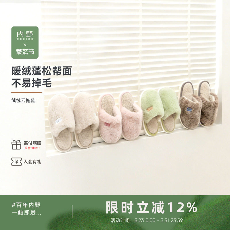 情侣绒面布艺拖鞋女秋冬款室内家居防滑静音布底男式丝绒居家托鞋