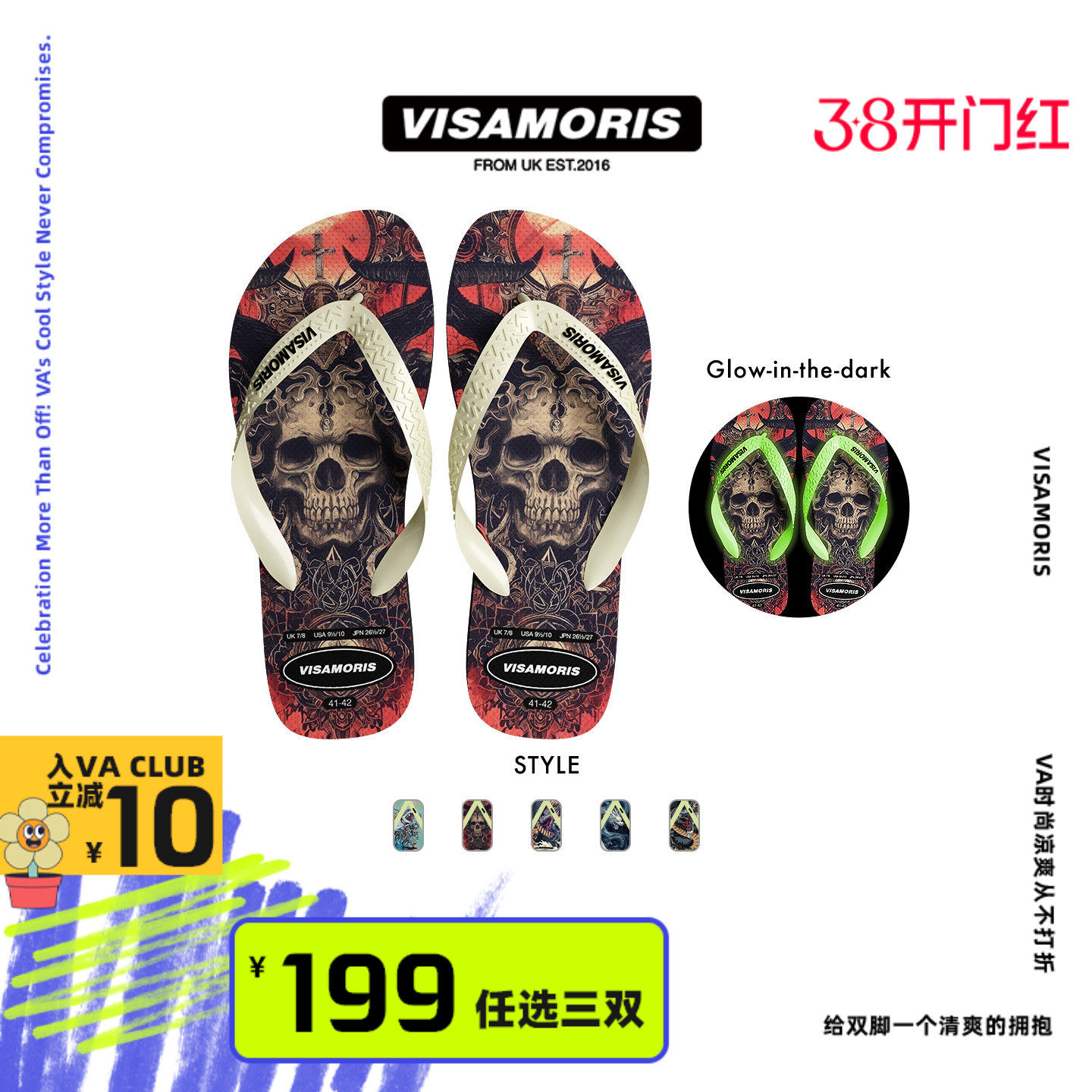 visamoris夜光人字拖鞋男女鞋夏季外穿夹脚防滑凉拖鞋海边沙滩鞋