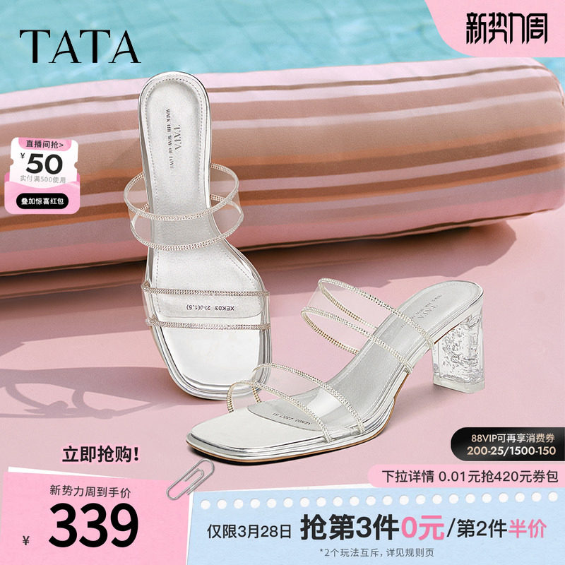 天美意新款坡跟条带外穿舒适简约百搭女凉拖鞋CTI20BT4