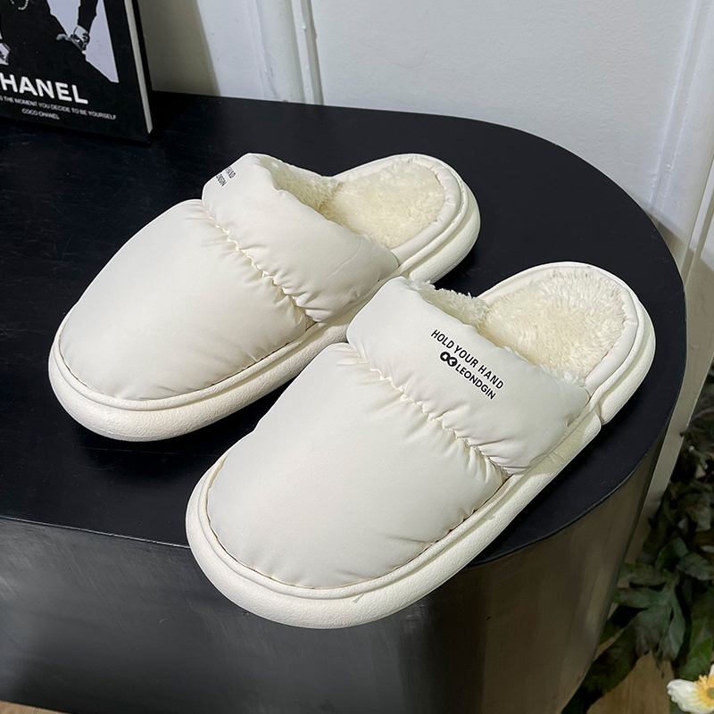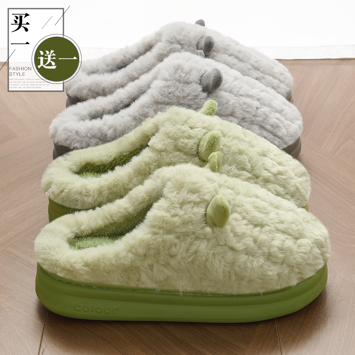 日式无印买1送1棉拖鞋女秋冬情侣一对室内家居防滑加绒毛毛绒棉拖