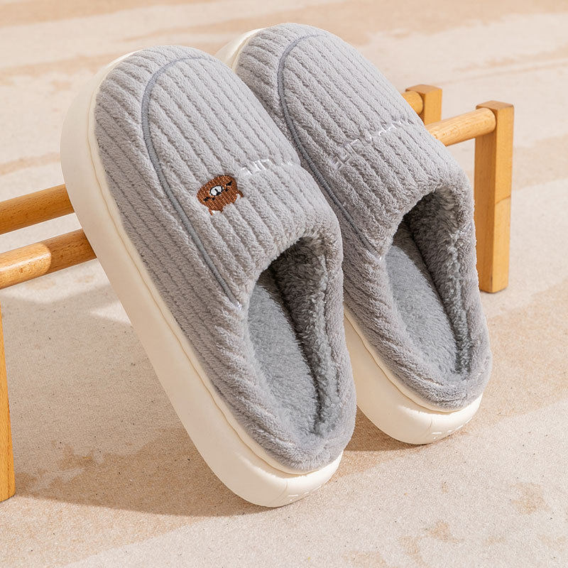 秋冬季毛绒棉拖鞋家居家居用男女厚底情侣防滑室内保暖鞋月子包头