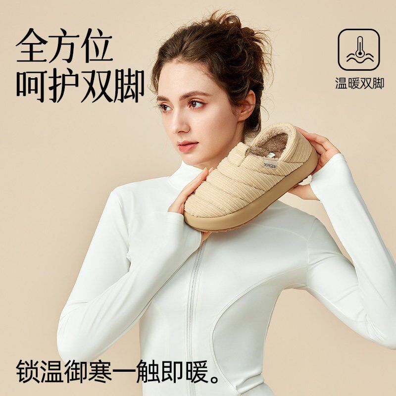 2026日本新款防水保暖棉拖鞋女冬季包跟室内居用防滑厚底月子棉鞋