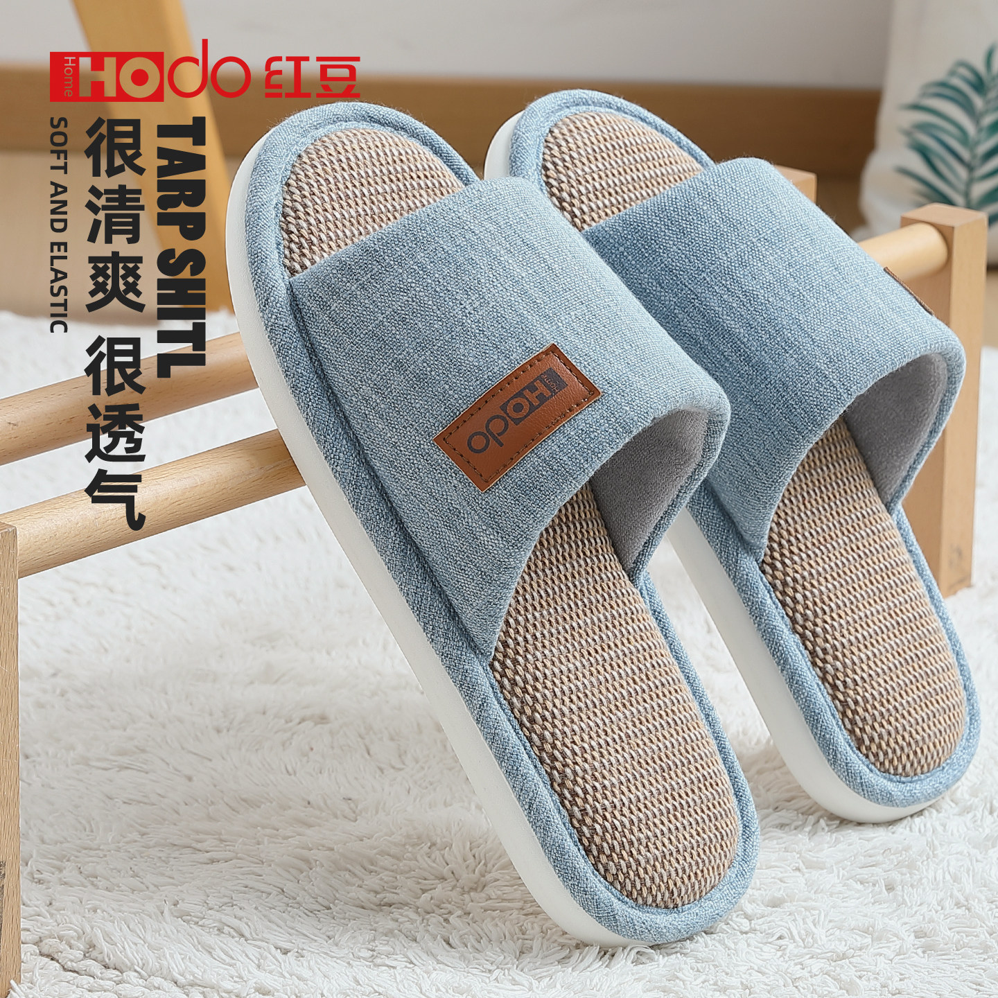 红豆防滑防臭亚麻拖鞋男士春秋四季室内家居透气吸汗地板拖鞋女式