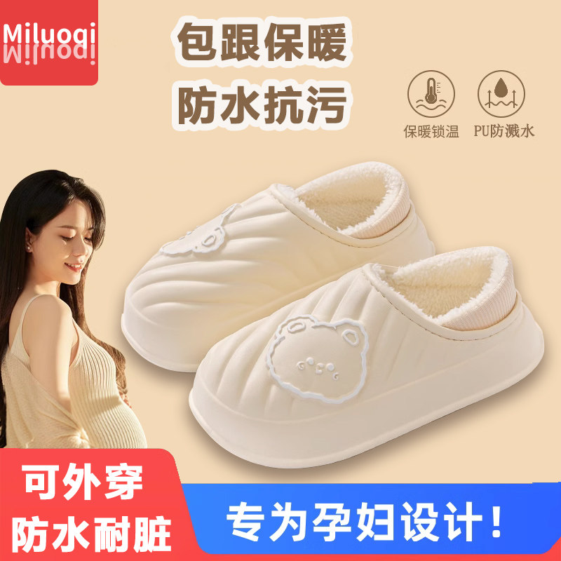 孕妇鞋女b士冬季包跟室内家居保暖厚底防滑防水产后月子棉拖鞋冬