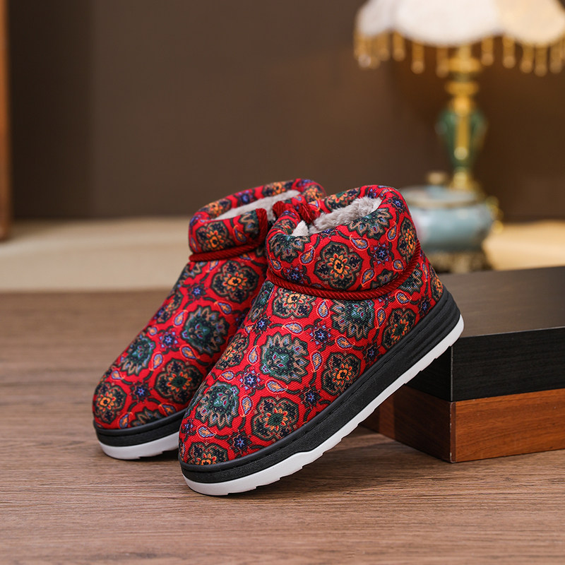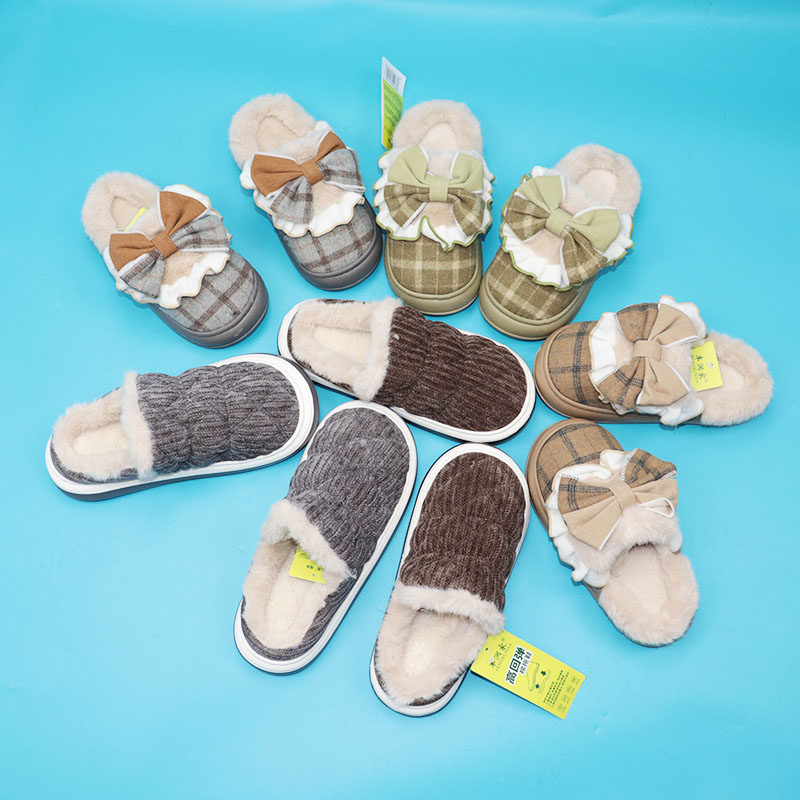 丰润家冬季条绒蝴蝶结格布居家男女保暖地板棉拖鞋