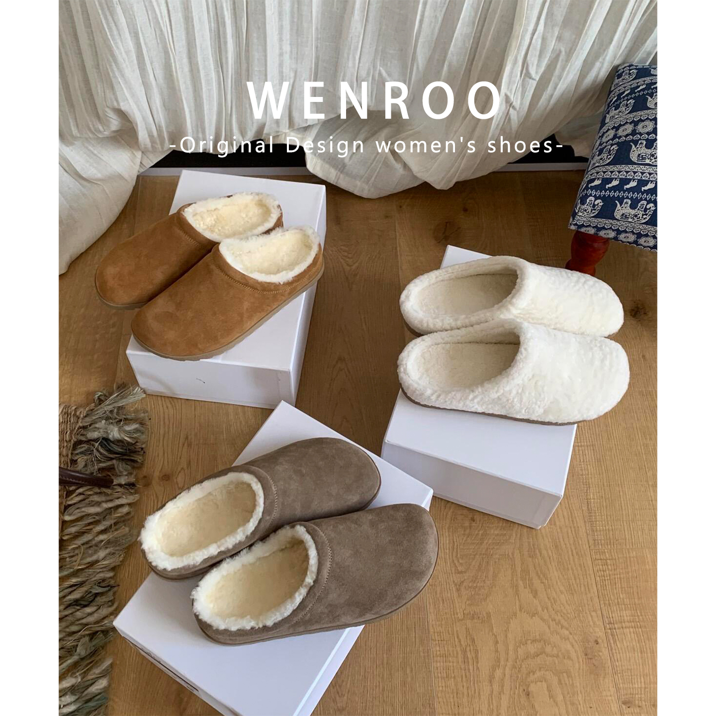 Pansy日本女士拖鞋居家室内包头加厚羊毛保暖简约防滑家居冬9030