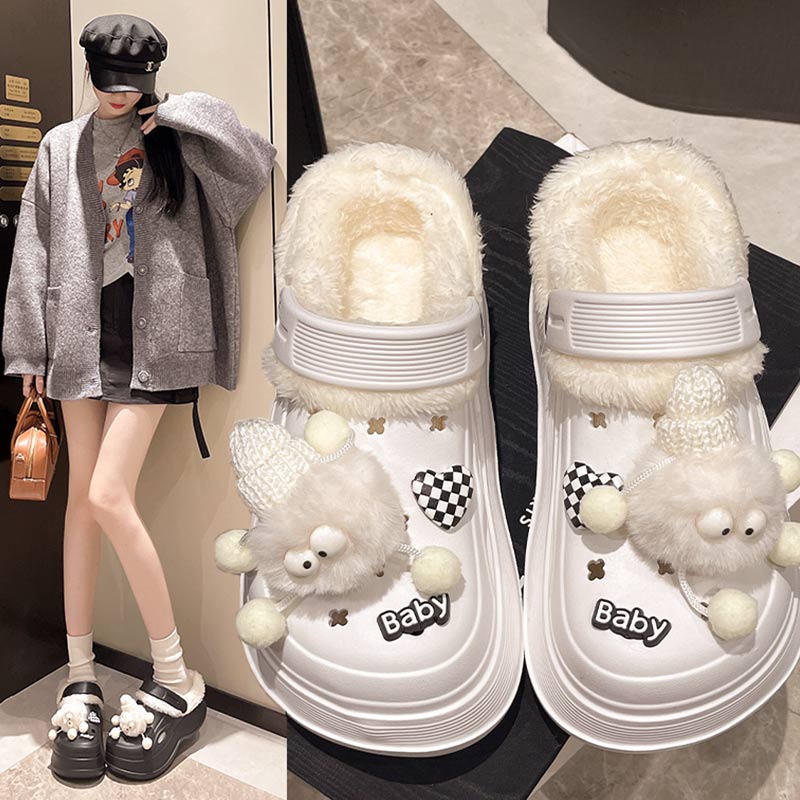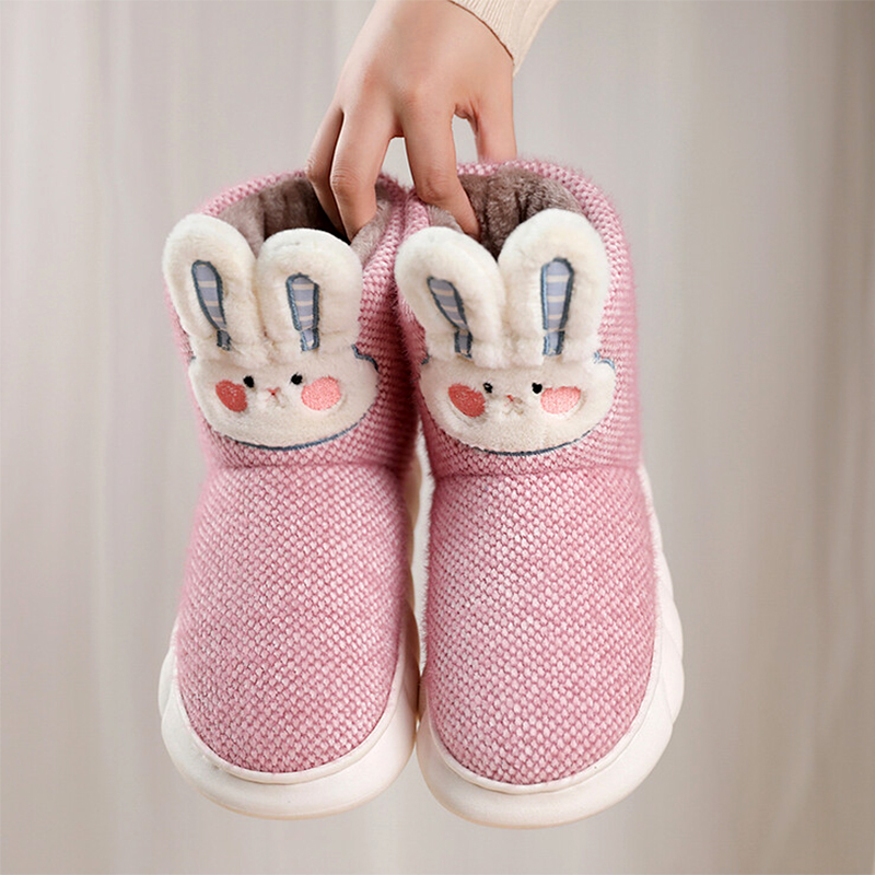 2024冬季可爱高帮加绒保暖棉拖鞋女包跟家居室内厚底外穿女士棉鞋