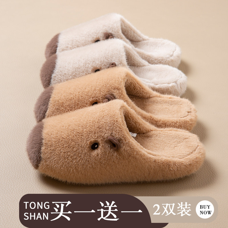 ECAC买1送1棉拖鞋女2025新款卡皮巴拉冬季情侣家居防滑保暖棉拖男
