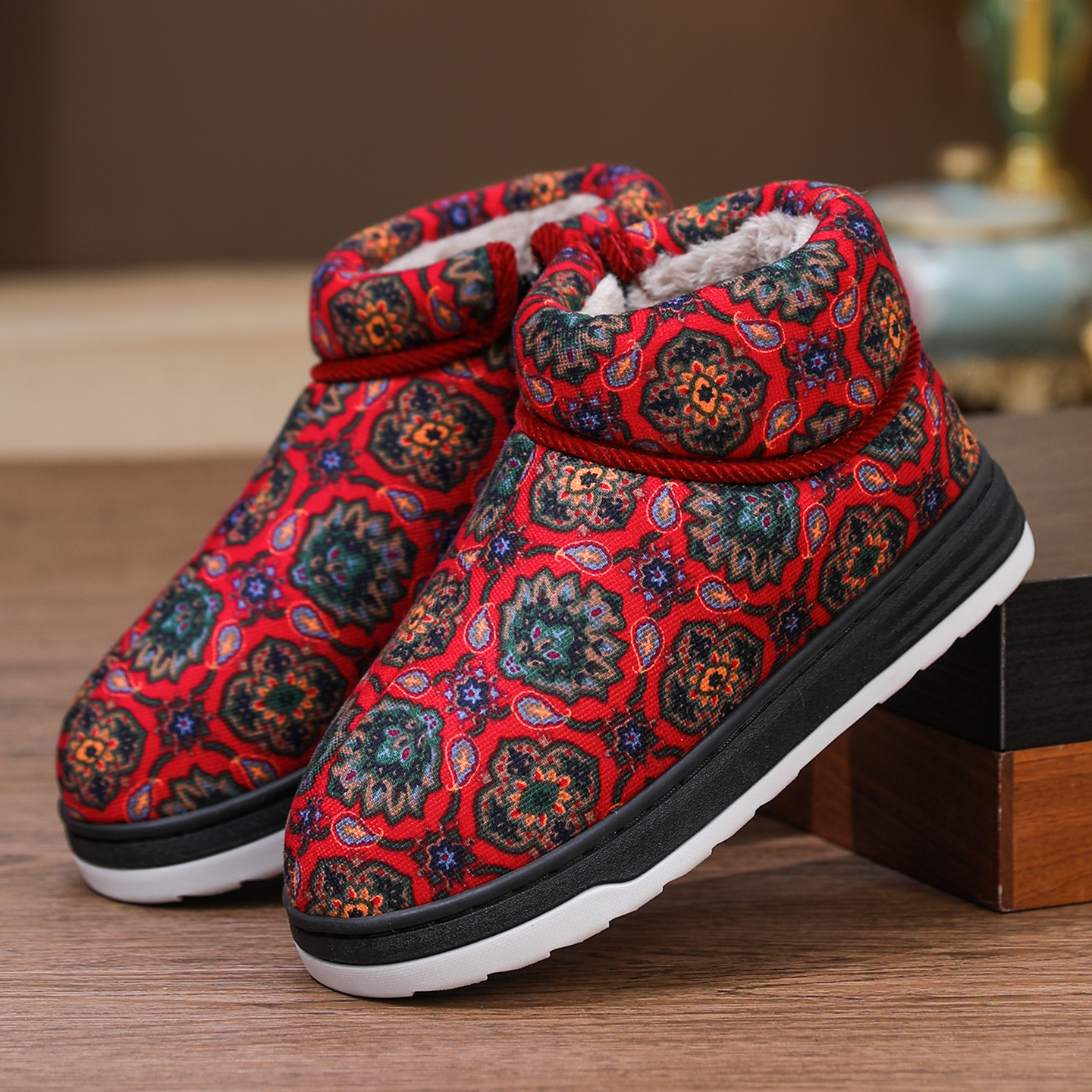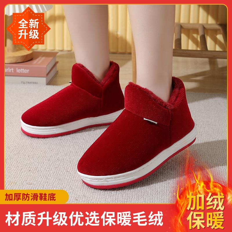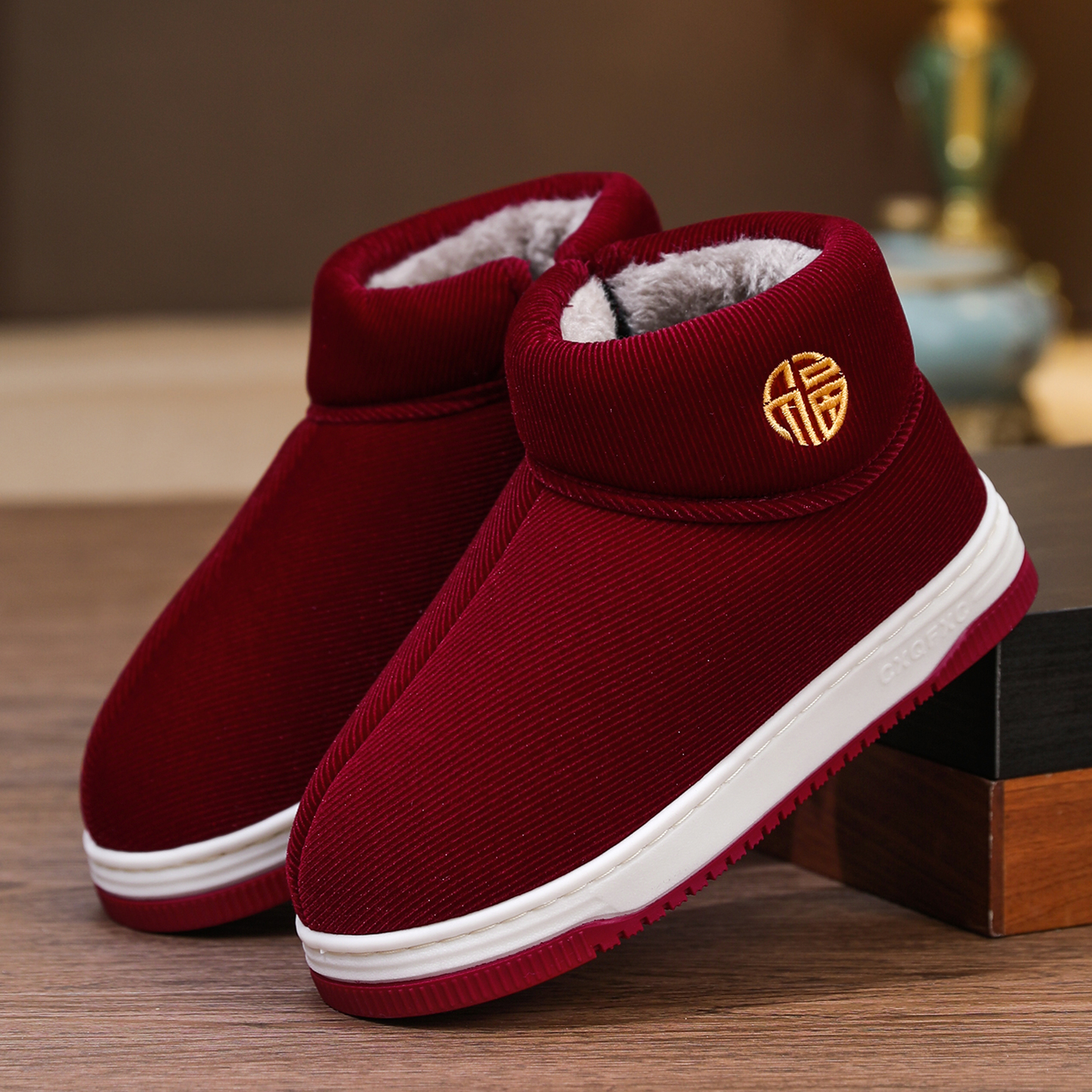 冬季灯芯绒高包跟棉拖鞋男女款厚底防滑加绒加厚保暖外穿老人棉鞋