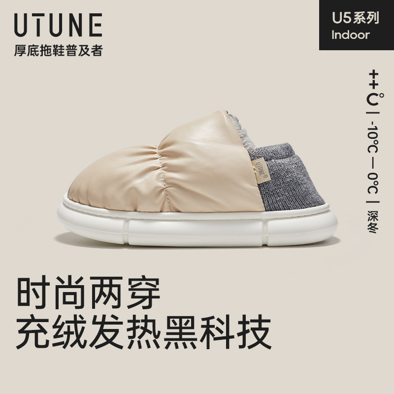 朴西沐光棉拖鞋女士居家室内拖鞋冬季保暖情侣款家居地板棉拖男士
