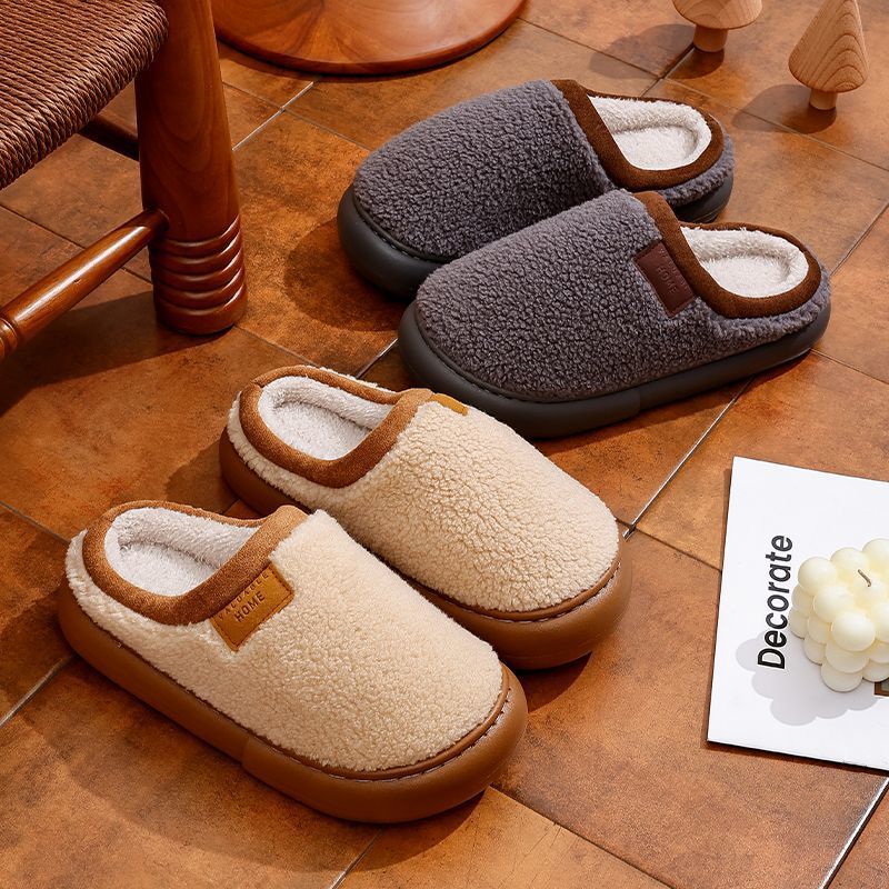 朴西新款保暖不粘毛棉拖鞋女冬季简约居家防滑室内静音情侣棉鞋男