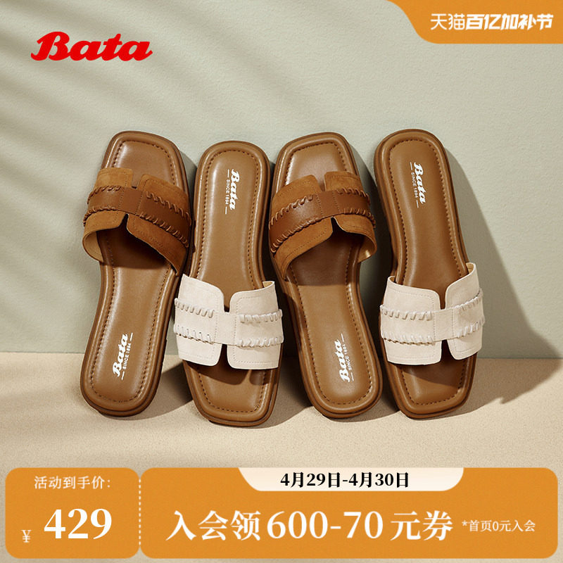 真皮~骄屿法式花朵凉拖鞋女夏外穿气质方头露趾凉鞋度假一字拖鞋
