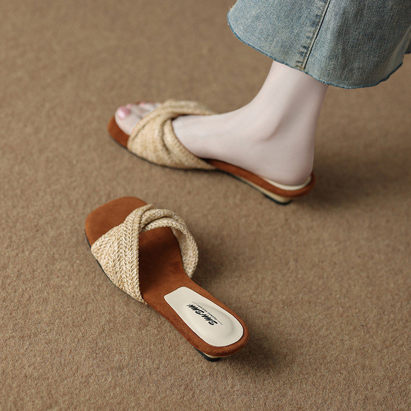 夏季居家编织藤草透气男女舒适草席室内居家用轻便平底凉亚麻拖鞋