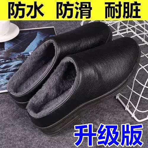 冬季全牛皮面包脚带后跟加厚保暖棉鞋男女防水居家室内真皮棉拖鞋