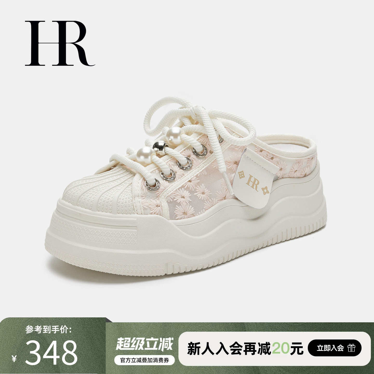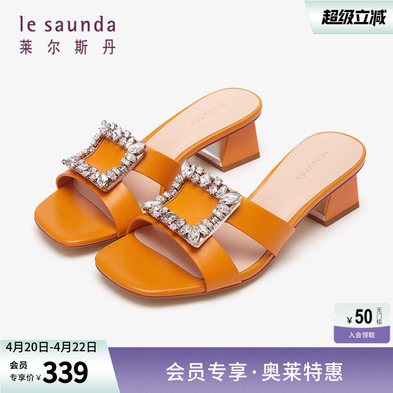 莱尔斯丹春夏新款商场同款时尚钻扣方头粗中跟女拖鞋4M52601