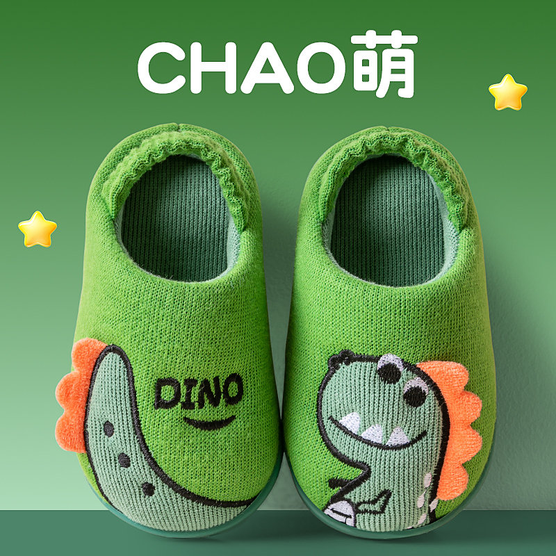可爱恐龙儿童棉拖鞋男孩2024新款秋冬季中小童宝宝带后跟室内防滑