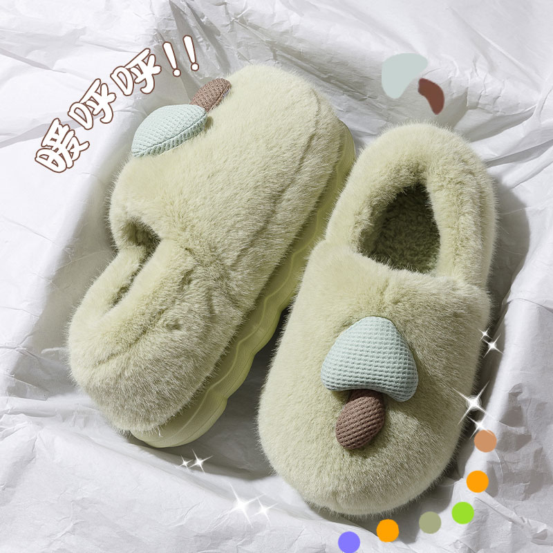 新款女生棉拖鞋厚底冬天加绒保暖女可外穿居家鞋可爱舒适防滑底
