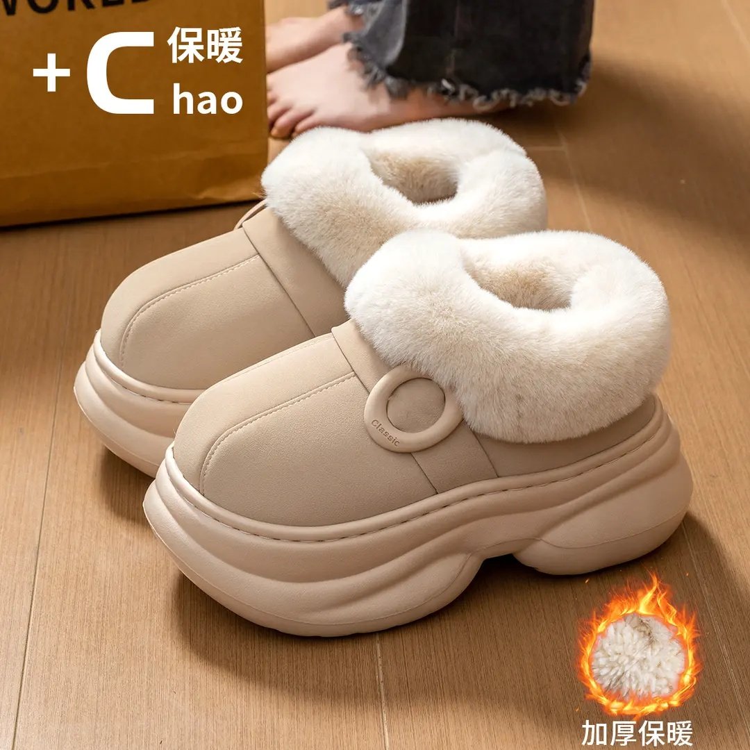 初雪小奶驼~!巨厚加绒外穿毛毛棉拖鞋女冬季厚底保暖防滑雪地靴