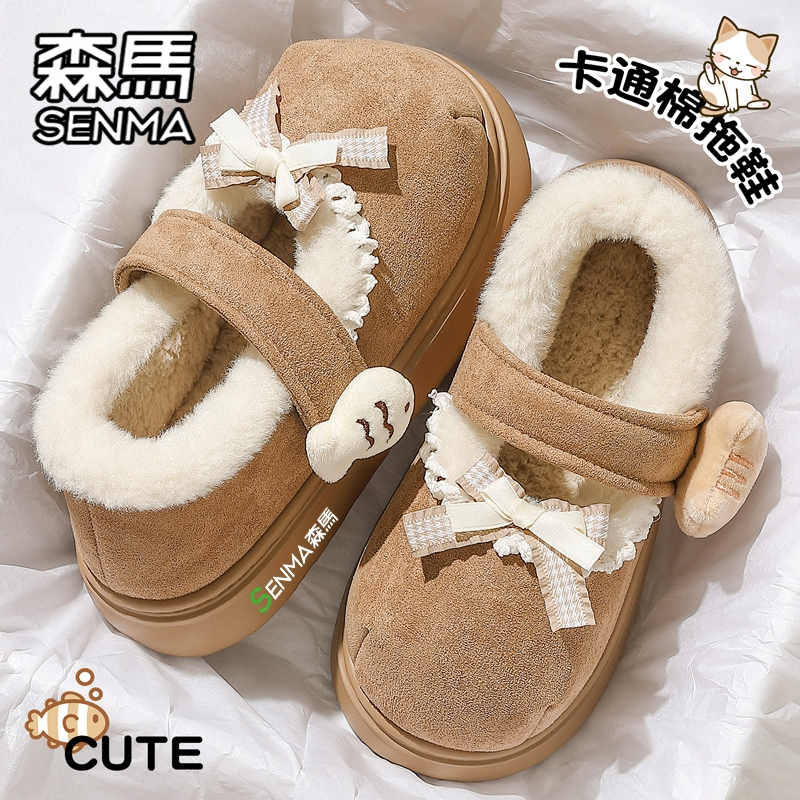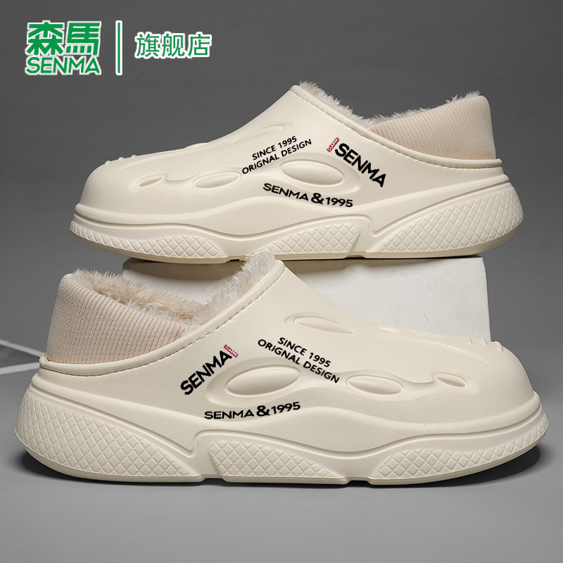 森马魔术贴棉拖鞋女冬季2025新款室内外厚底防滑包跟加绒毛绒棉鞋