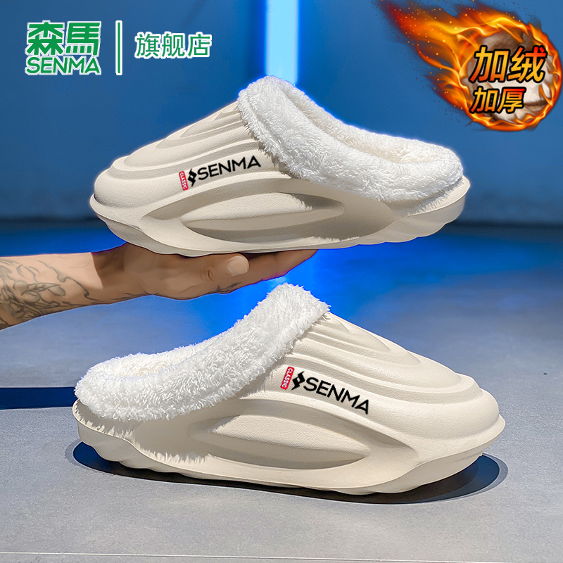 森马包头半拖鞋男冬季加绒保暖室内居家防滑户外加厚防寒大头棉鞋