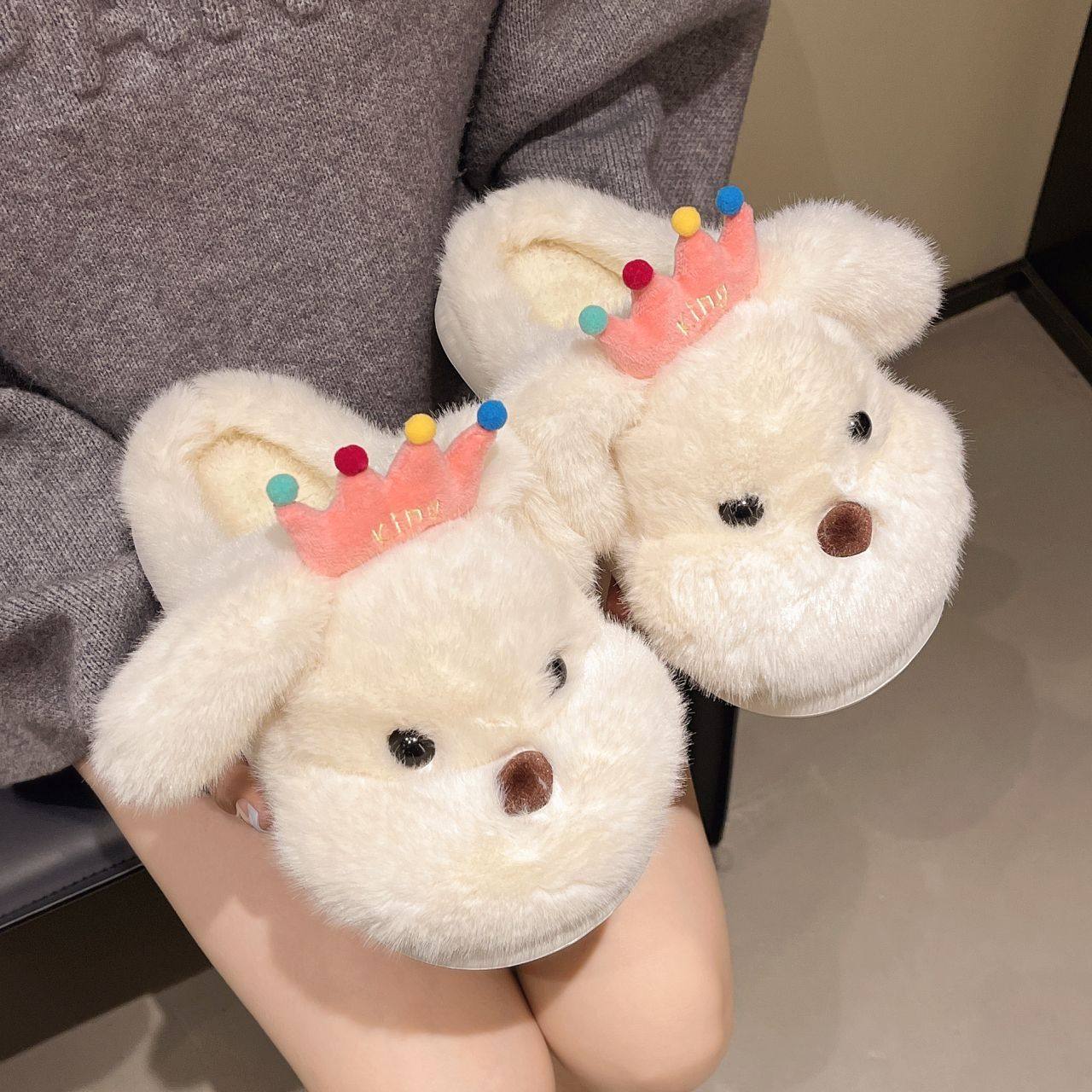2025新款卡通小狗棉拖鞋女冬季室内居家防滑加绒保暖毛毛棉鞋外穿