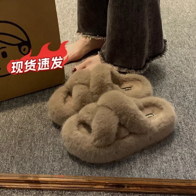 网红休闲小香风雪地鞋加绒加厚保暖2025年秋冬季新款毛毛棉拖鞋女