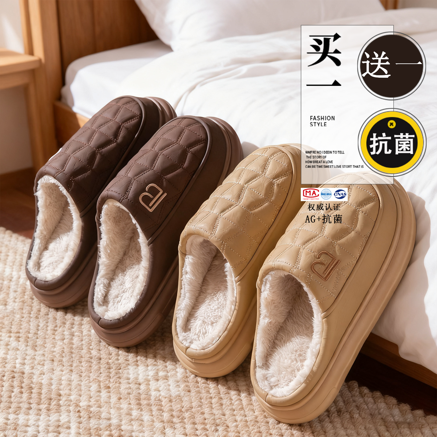 买1送1防水棉拖鞋女冬季新款情侣室内家居毛绒保暖抗菌防臭棉拖男